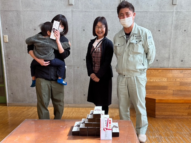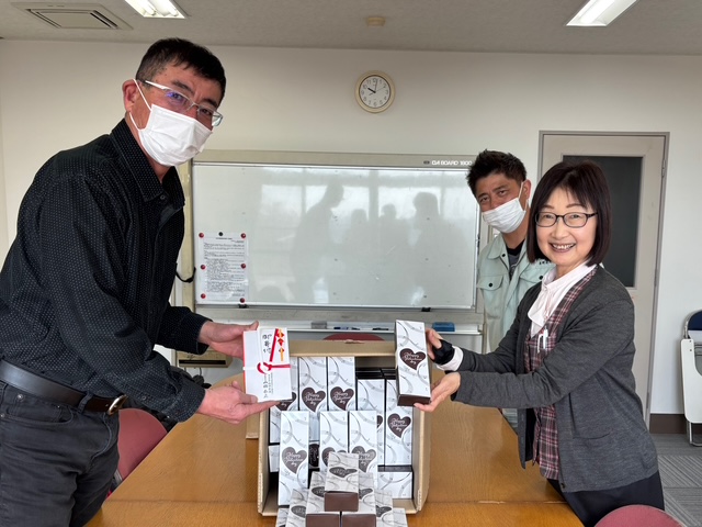 前日の2月13日に総務部長と広報担当社員が施設を訪問しギフトをお届けしました。