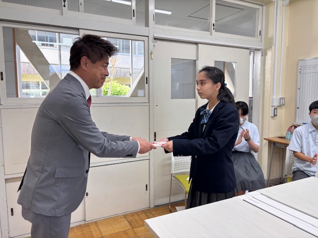 長野総務部長から生徒会長へお渡ししてきました。